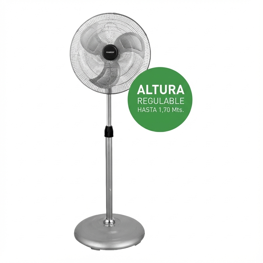 - Cabezal oscilante y altura ajustable que permiten dirigir el flujo de aire según se requiera.